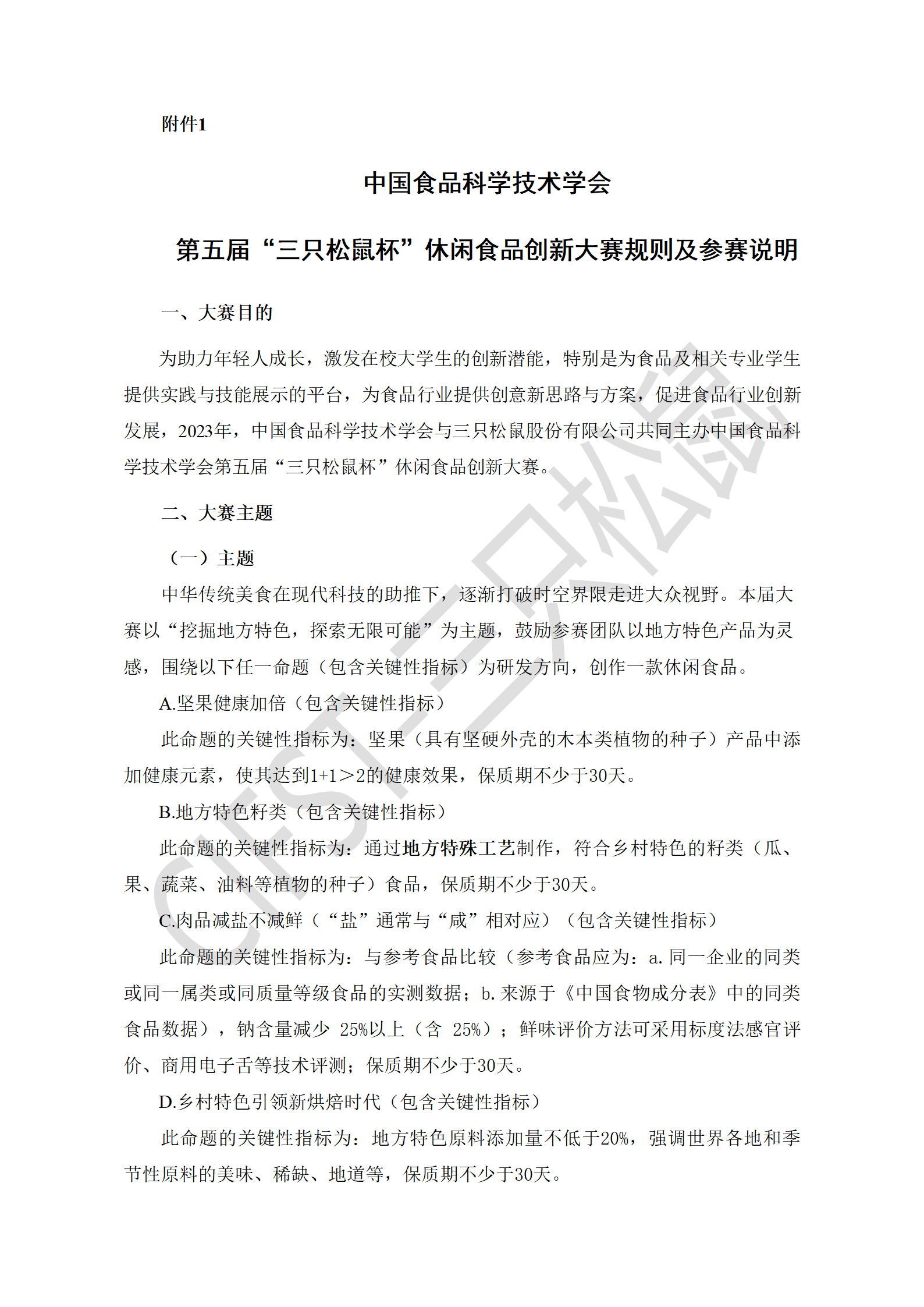 附件1:CIFST第五届“三只松鼠杯”休闲食品创新大赛-规则及参赛说明-终版.docx