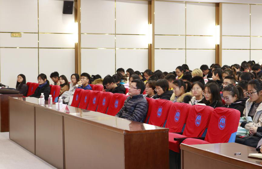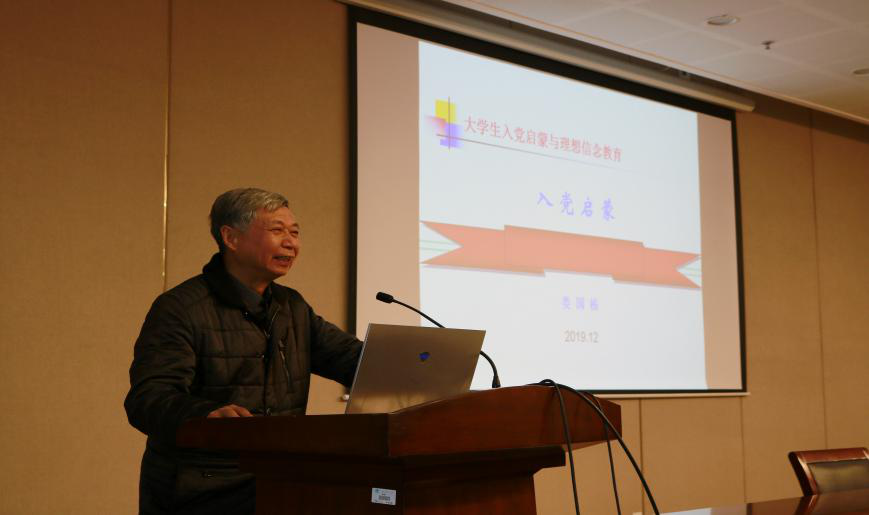 12月4日下午,澳门电子pg游戏官网2019级本科生入党启蒙教育活动在图书馆三楼报告厅顺利举行。此次活动邀请到澳门电子pg游戏官网关工委常务副主任娄国栋主讲,澳门电子pg游戏官网党委副书记张文主持报告会,2019级全体同学聆听了报告会。