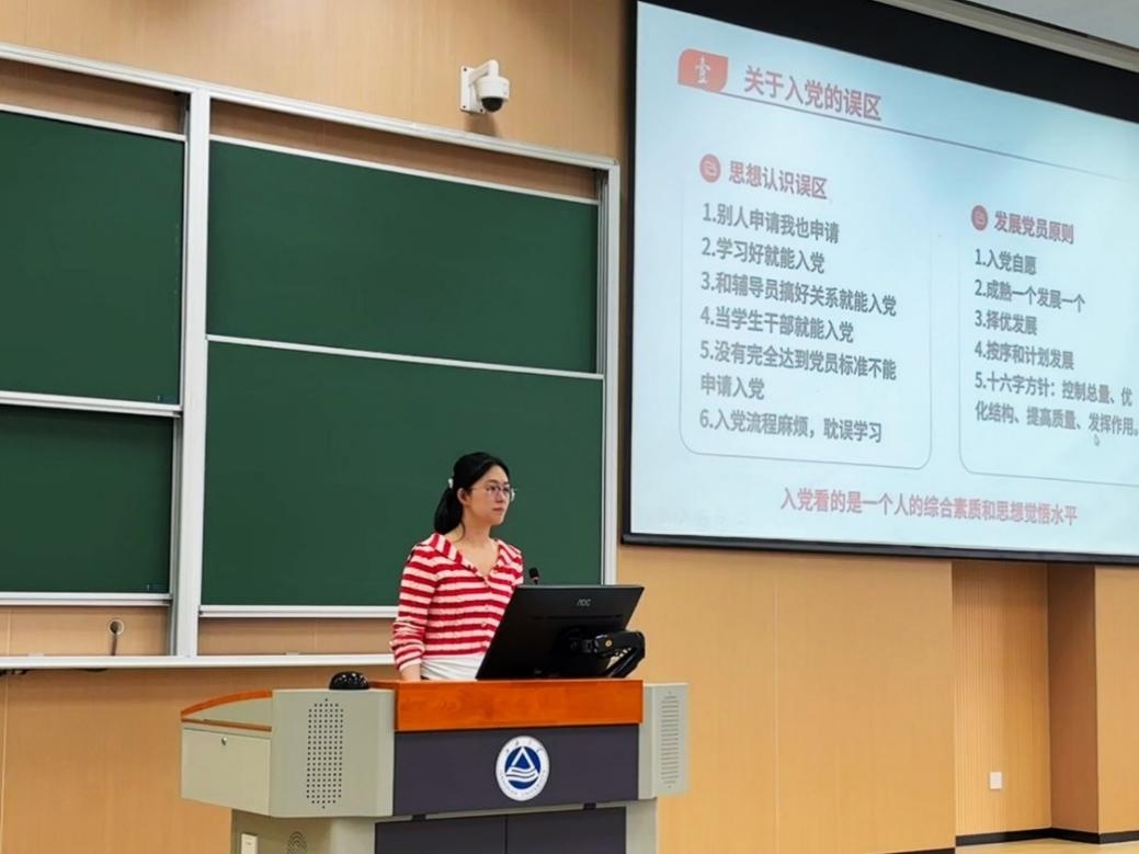 崔家玮详细介绍党员发展的具体流程。她指出,从递交入党申请书到成为一名合格的党员,要历经党组织长期的严格考察,希望同学们在向党组织靠拢的过程中深入思考、积极实践,时刻以优秀共产党员的标准严格要求自己。