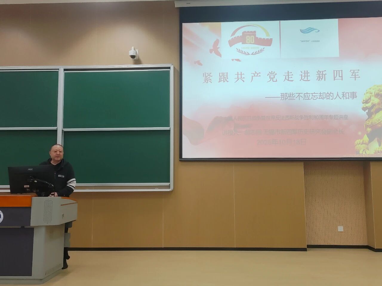 活动伊始,郝志刚以《紧跟共产党走进新四军——那些不应忘却的人和事》为题讲授入党第一课。他在报告中梳理了中国共产党成立以来不同时期青年选择入党的多样动因与个人追求,深入剖析“中国共产党为什么行”的内在逻辑,引导新生深刻认识到,入党绝非单纯的荣誉象征,更是沉甸甸的责任与使命担当。