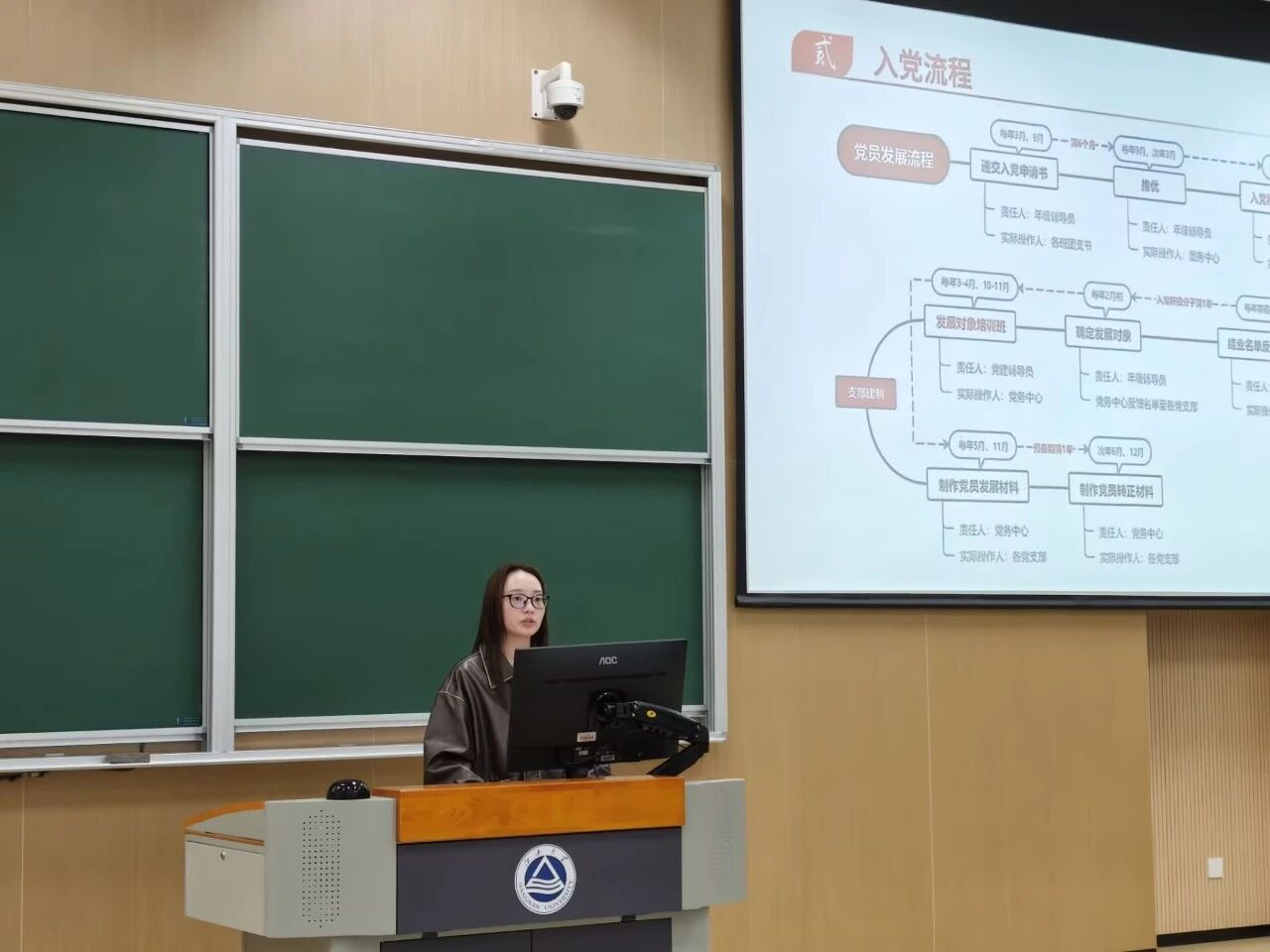 黄玄以“为什么要入党”为切入点,深入阐释树立正确入党动机的重要性,全面细致地阐述了入党的基本条件、申请流程等,为新生提供了清晰指引,助力其合理规划政治成长路径。