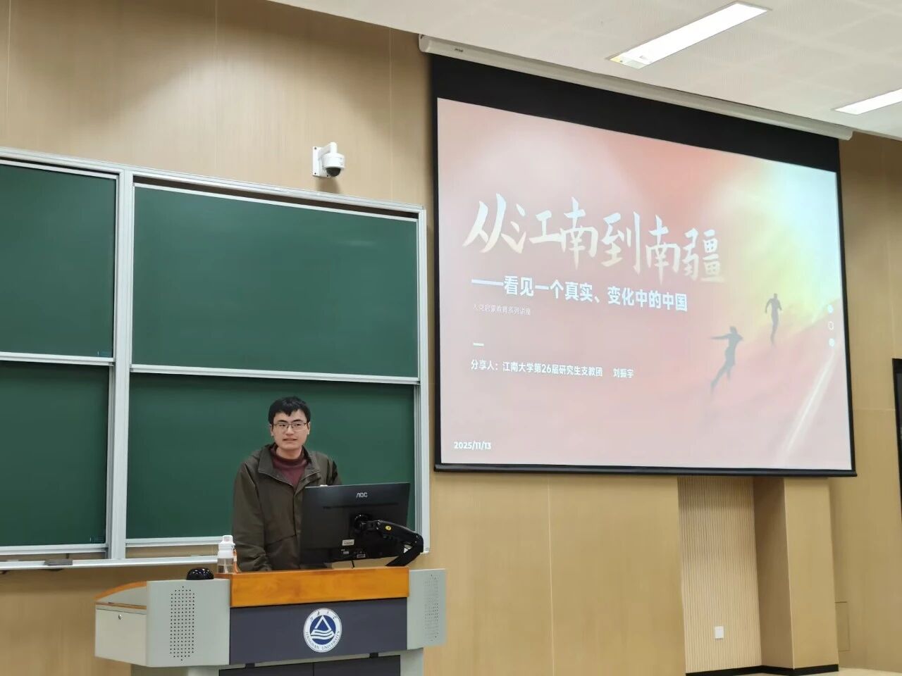 最后,优秀党员代表刘振宇同志结合自身支教经历,分享了在西部地区的成长故事与感悟。面对支教中恶劣的自然环境、艰苦的生活条件及跨学科教学挑战,他从未退缩,始终以党员标准严格要求自己。其事迹激励新生树立正确入党动机,积极投身党的事业。